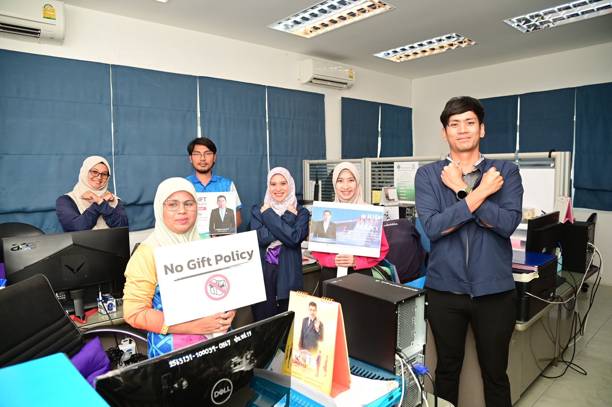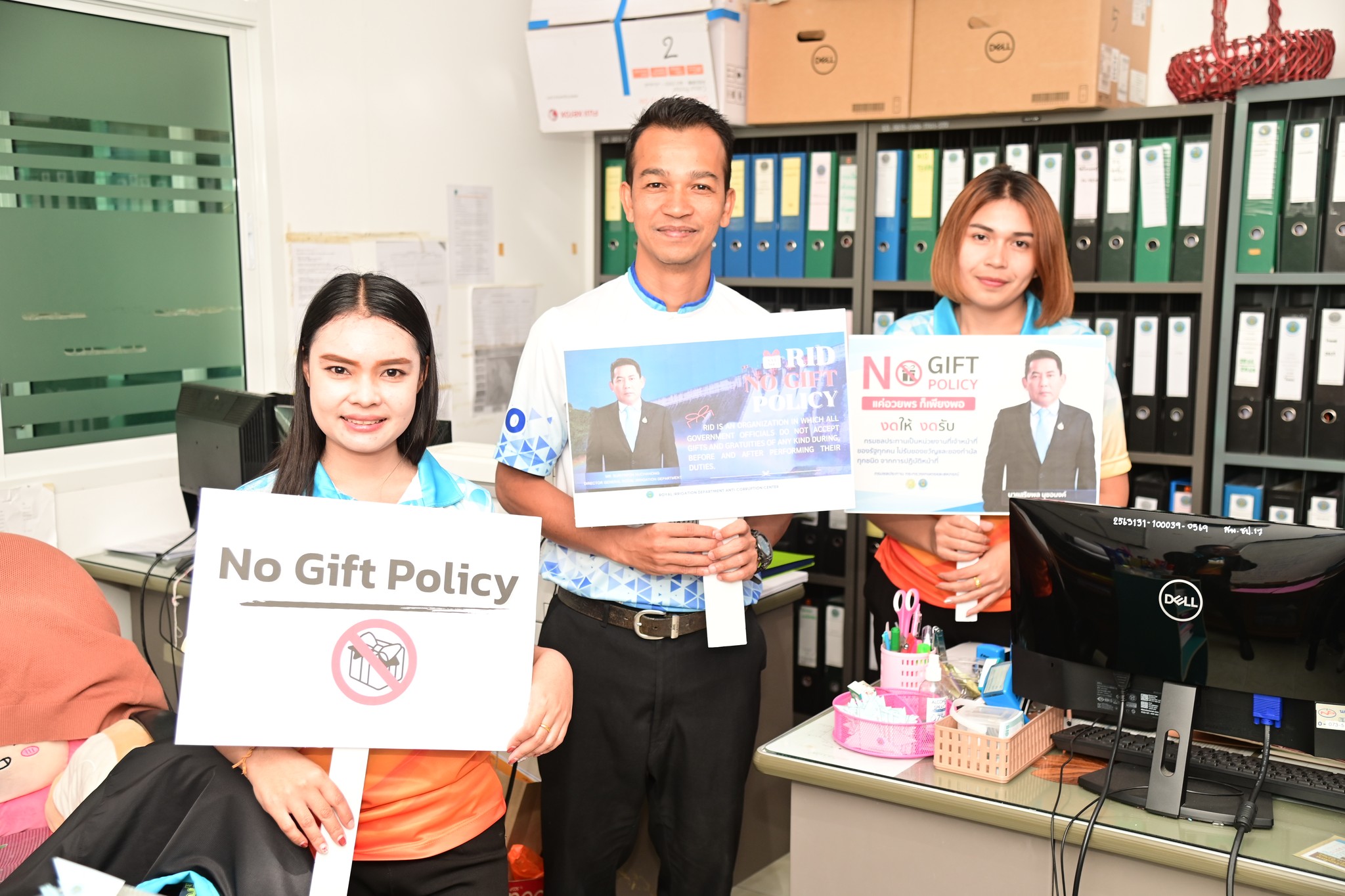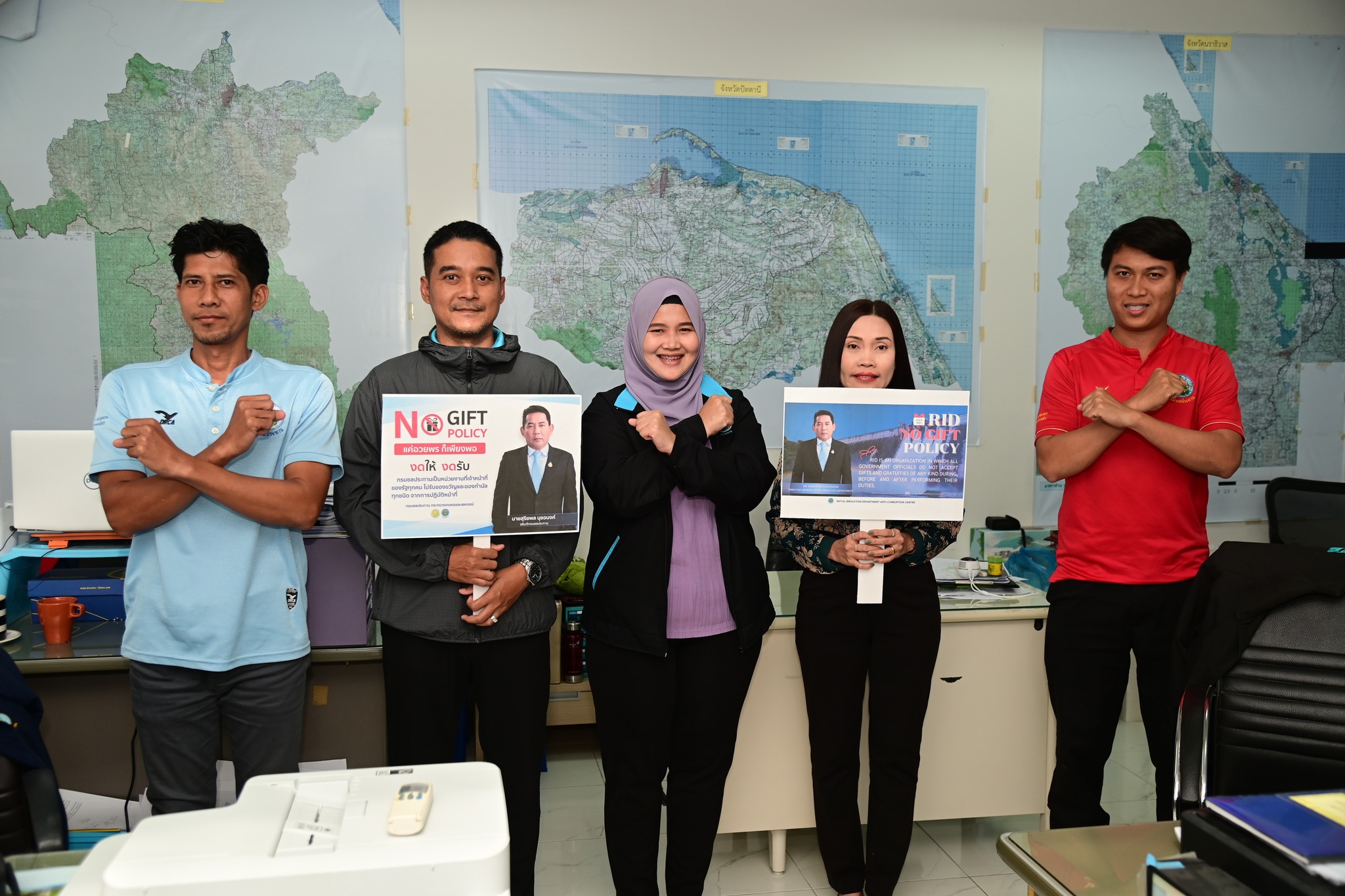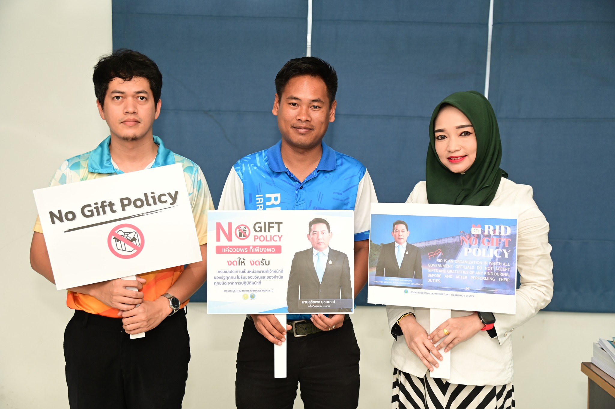 วันที่ 5 มีนาคม 2568 ผู้อำนวยการสำนักงานชลประทานที่ 17 มอบหมายให้ นางสาวรื่นฤดี ผลกล้า หัวหน้าฝ่ายประชาสัมพันธ์และสารสนเทศ และเจ้าหน้าที่ฝ่ายประชาสัมพันธ์และสารสนเทศ สำนักงานชลประทานที่ 17 ดำเนินการประชาสัมพันธ์ ร่วมรณรงค์ NO Gift Policy ตามนโยบายของ นายสุริยพล นุชอนงค์ อธิบดีกรมชลประทาน กระทรวงเกษตรและสหกรณ์ ณ ที่ทำการสำนักงานชลประทานที่ 17 ตำบลกะลุวอเหนือ อำเภอเมือง จังหวัดนราธิวาส