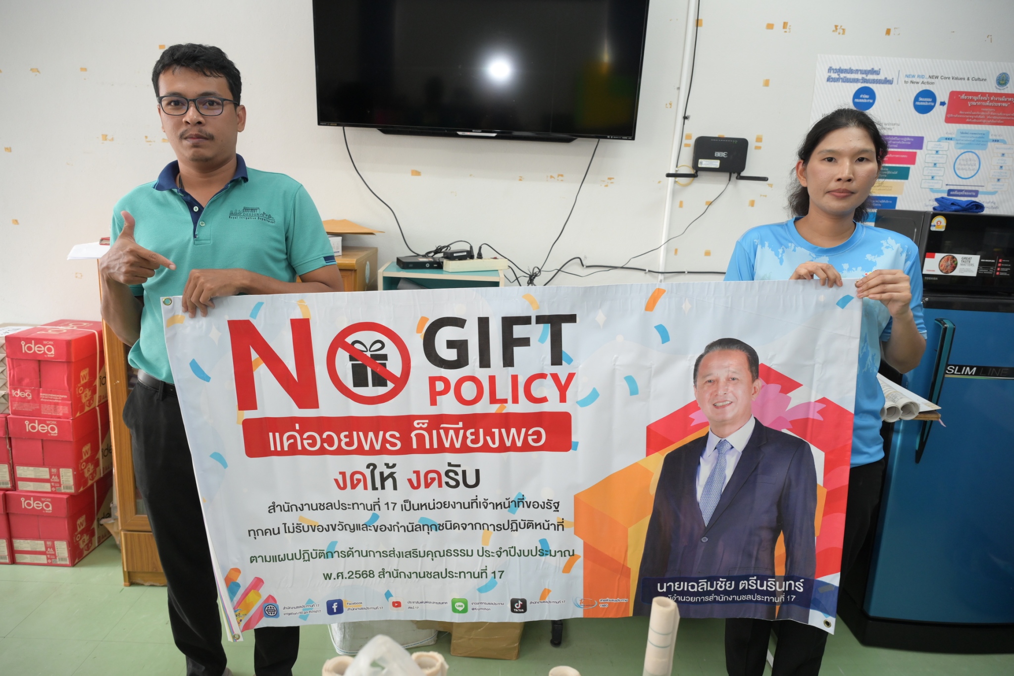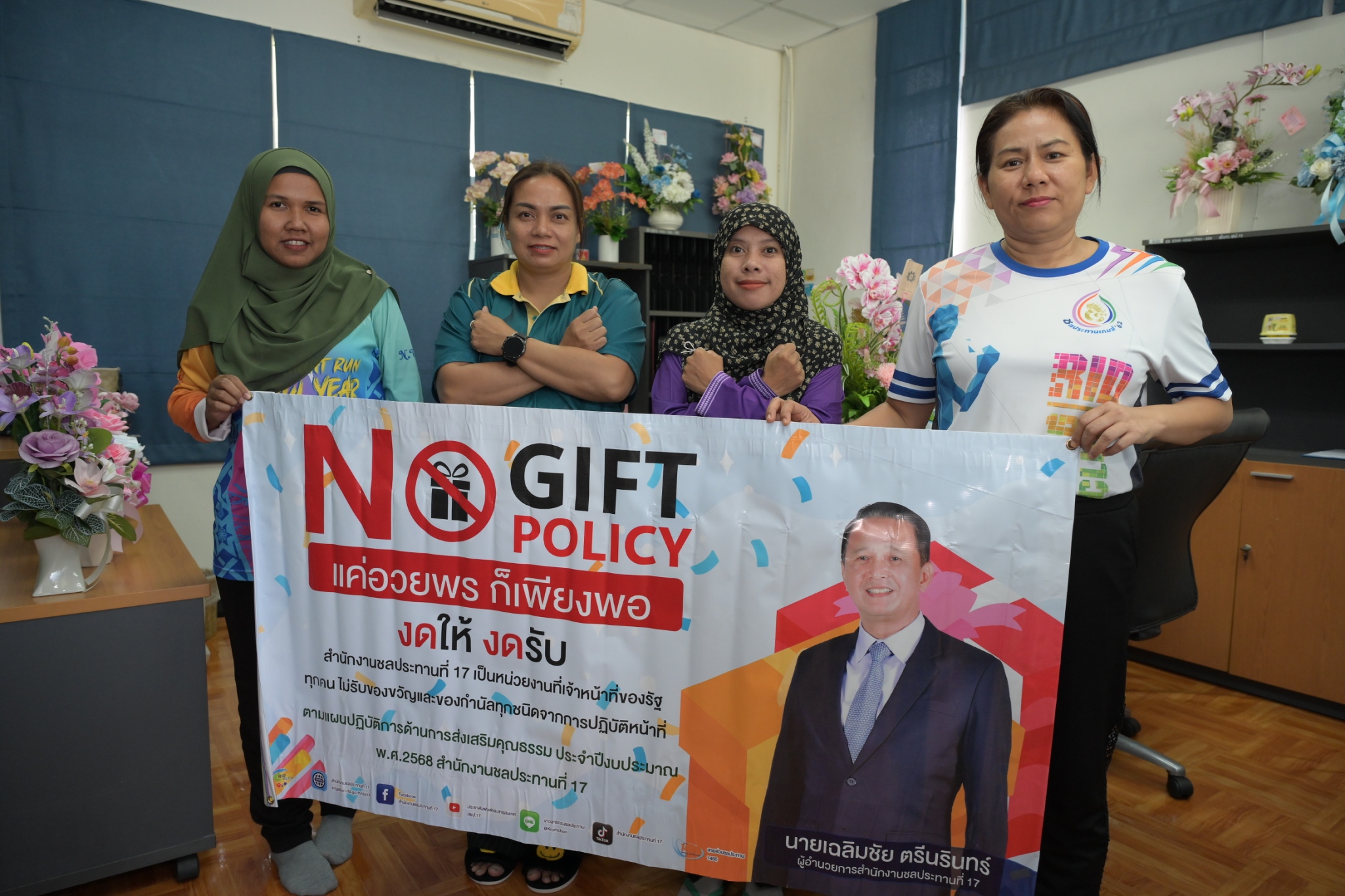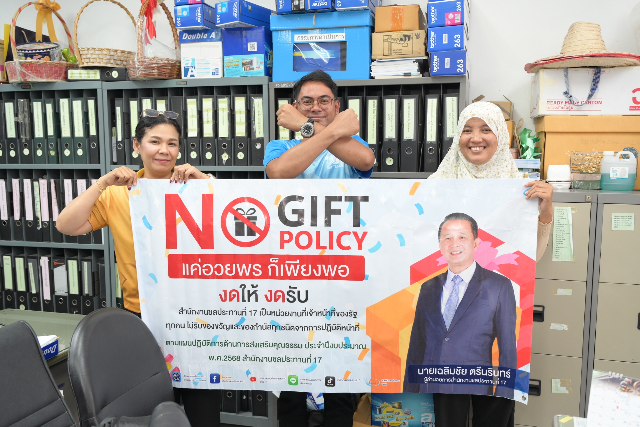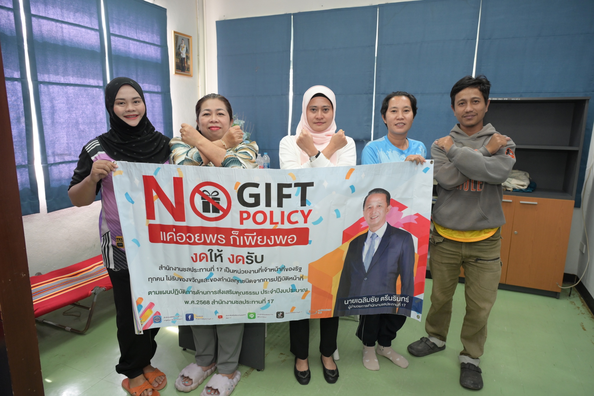 วันที่ 21 พฤษภาคม 2568 นายเฉลิมชัย ตรีนรินทร์ ผู้อำนวยการสำนักงานชลประทานที่ 17 นำคณะผู้บริหาร ข้าราชการ และเจ้าหน้าที่สำนักงานชลประทานที่ 17 ร่วมประกาศเจตนารมณ์นโยบาย No Gift Policy จากการปฏิบัติหน้าที่ ตามนโยบายของอธิบดีกรมชลประทาน เพื่อเป็นการสร้างทัศนคติค่านิยมที่ดีแก่บุคลากรในสังกัดในการปฏิเสธการรับของขวัญและของกำนัลทุกชนิดจากการปฏิบัติหน้าที่ โดยมี ผู้เชี่ยวชาญด้านวิศวกรรมชลประทาน ผู้อำนวยการส่วน หัวหน้าฝ่าย ข้าราชการ และเจ้าหน้าที่สังกัดสำนักงานชลประทานที่ 17 ร่วมประกาศเจตนารมณ์ ณ ที่ทำการสำนักงานชลประทานที่ 17 ตำบลกะลุวอเหนือ อำเภอเมือง จังหวัดนราธิวาส