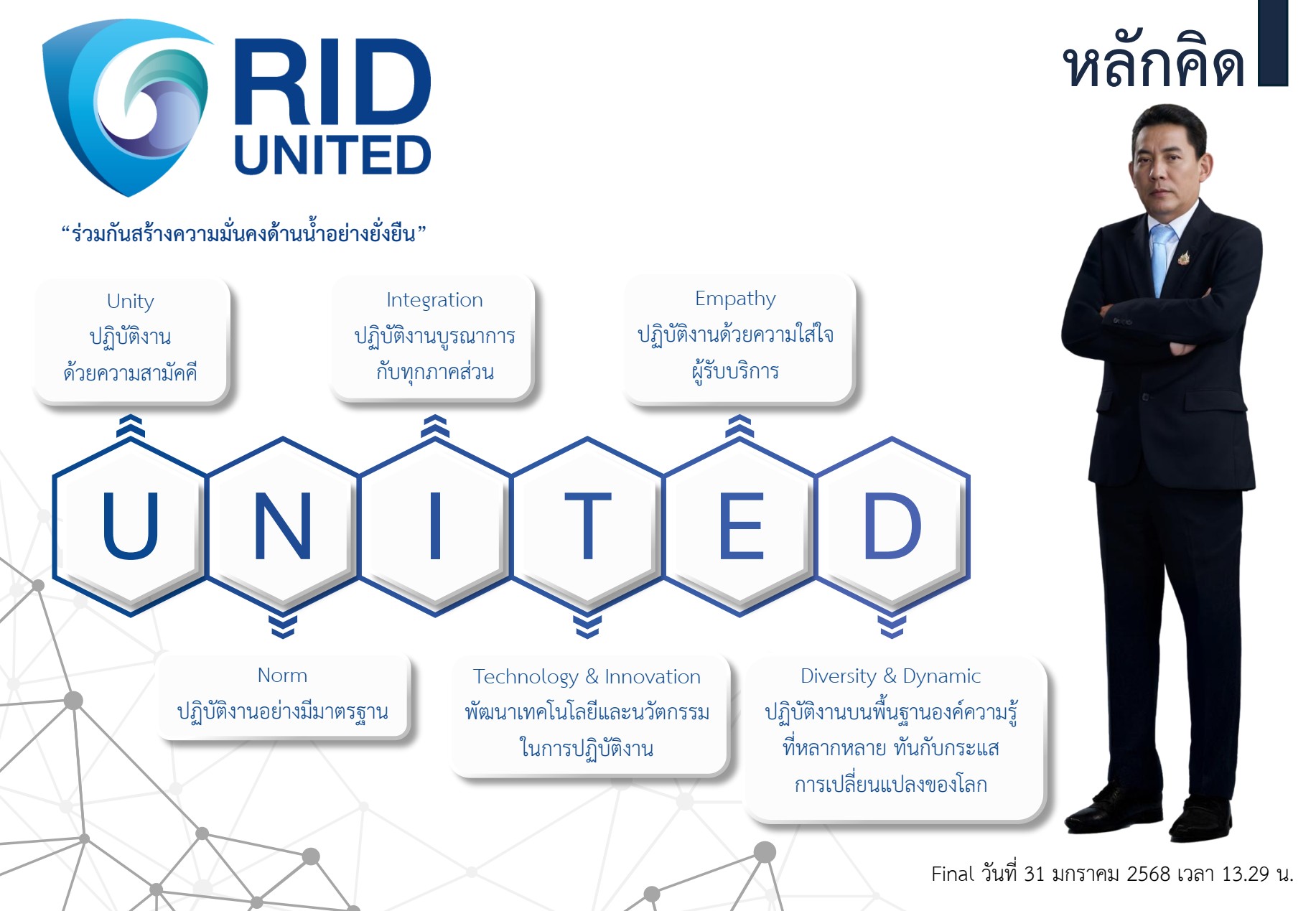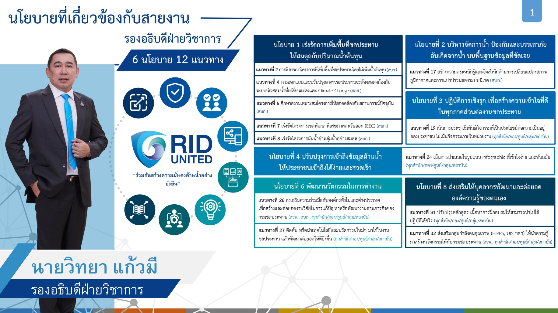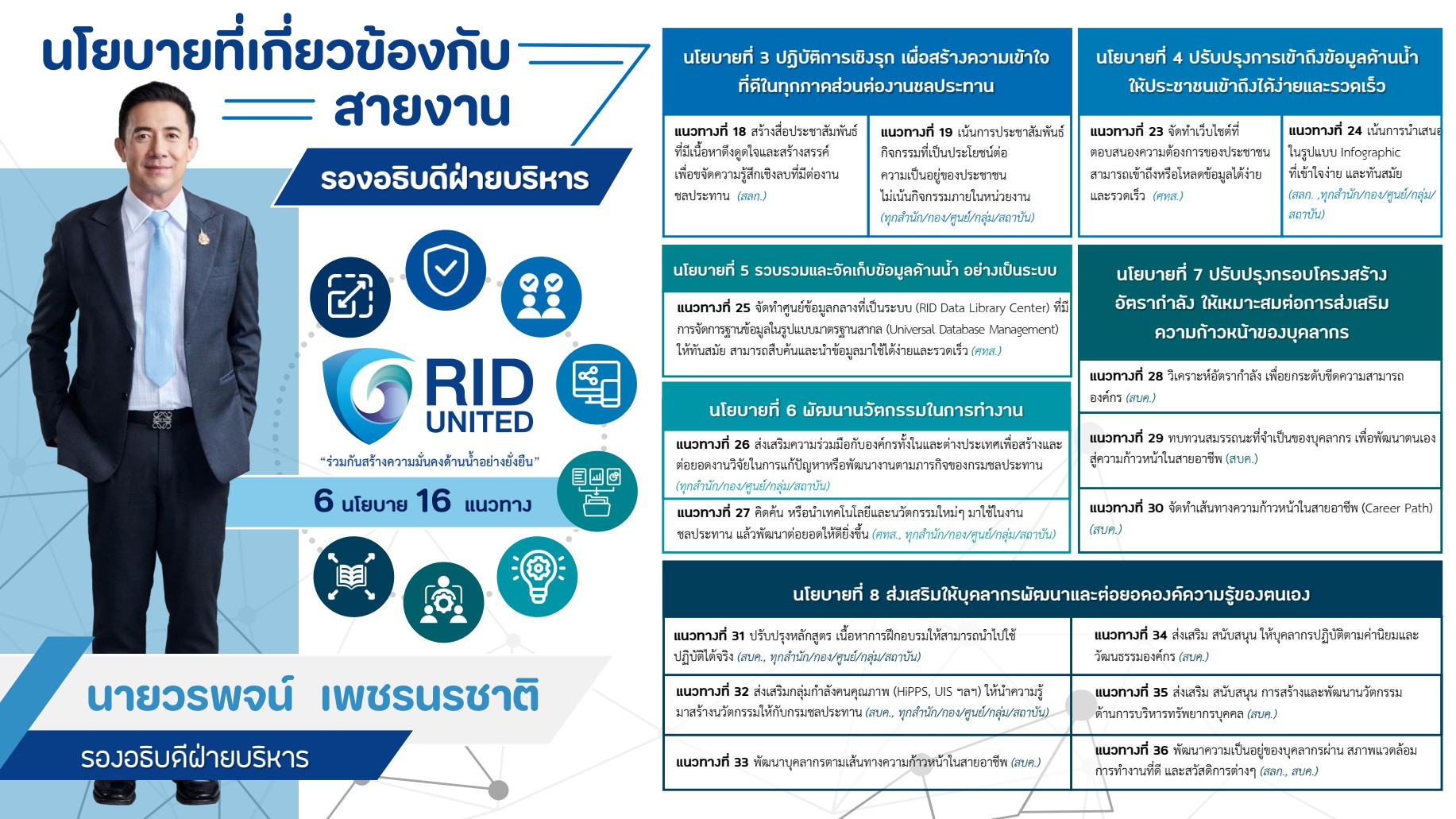 นโยบาย " RID UNITED " ที่เกี่ยวข้องกับสายงานรองอธิบดีฝ่ายบริหาร |