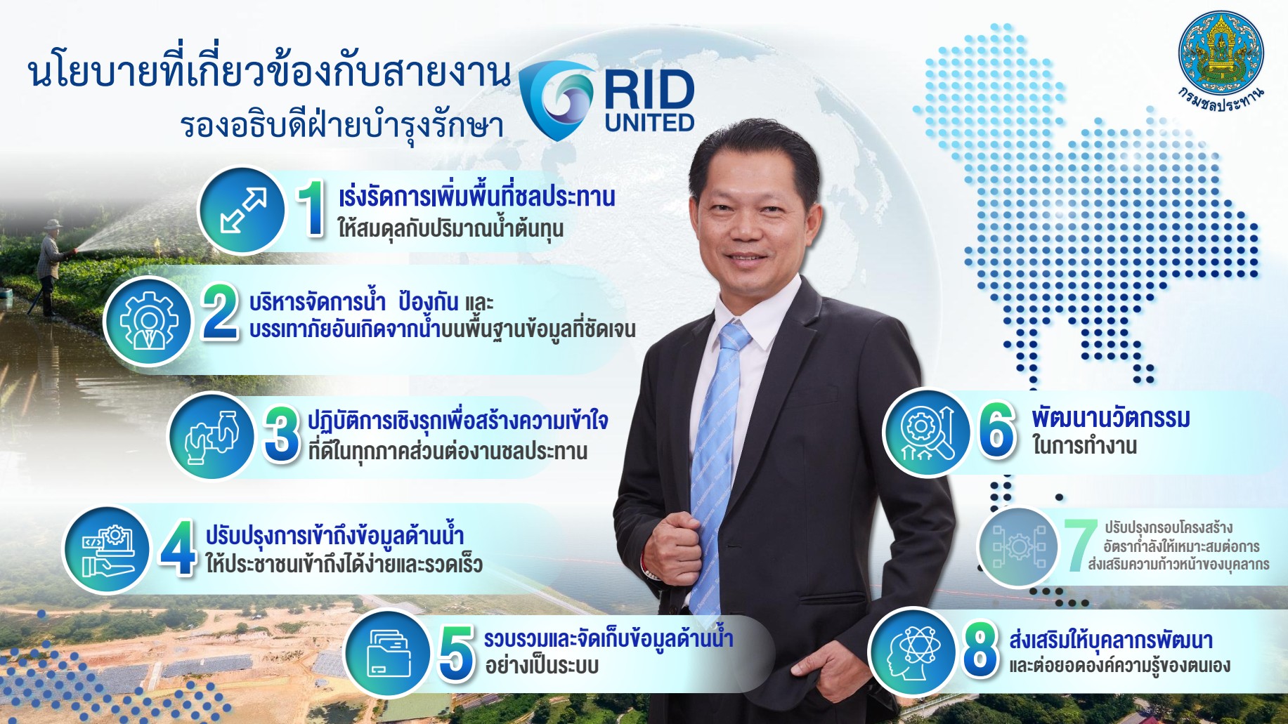 นโยบาย " RID UNITED " ที่เกี่ยวข้องกับสายงานรองอธิบดีฝ่ายบำรุงรักษา |