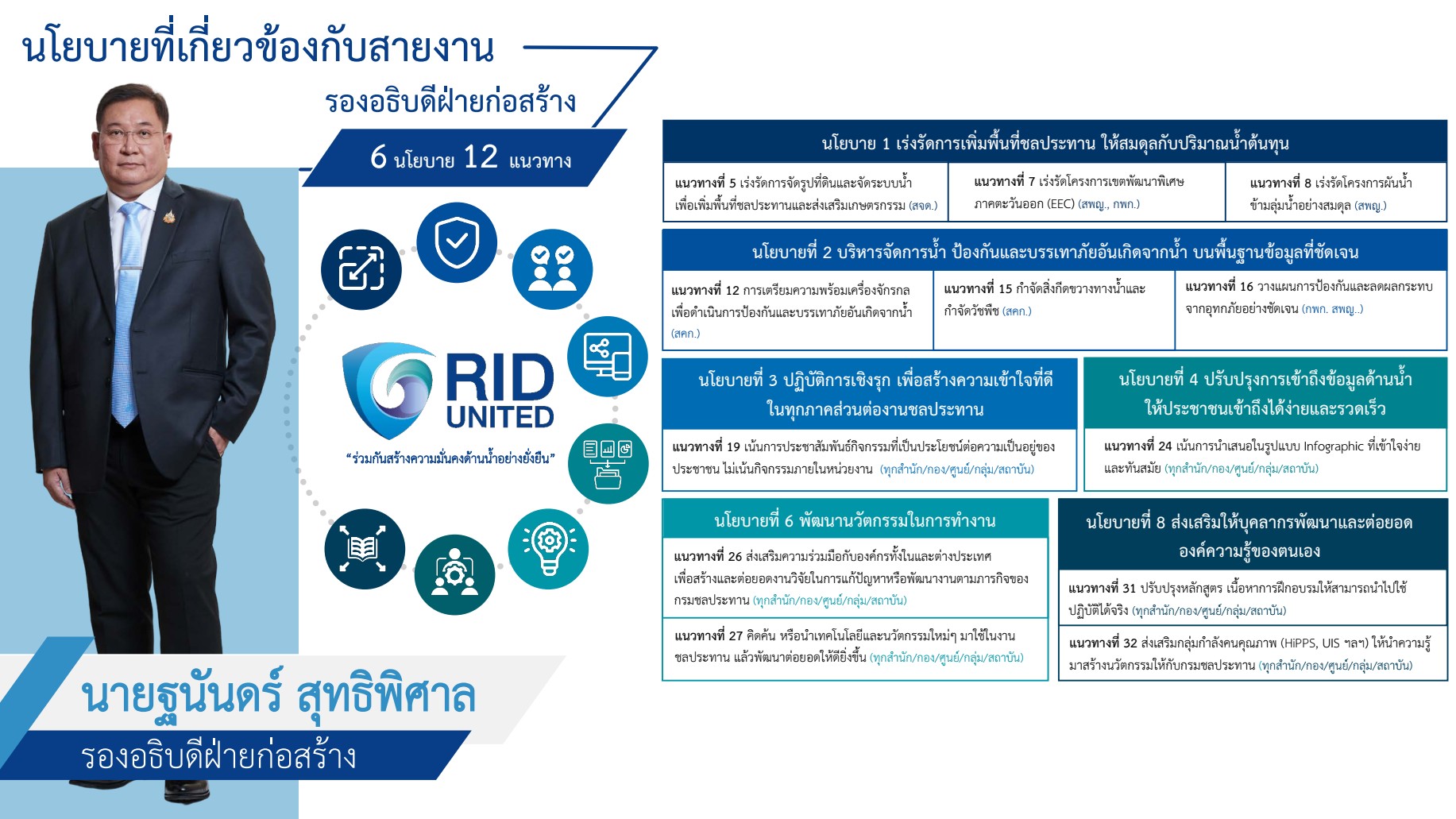 นโยบาย " RID UNITED " ที่เกี่ยวข้องกับสายงานรองอธิบดีฝ่ายก่อสร้าง |