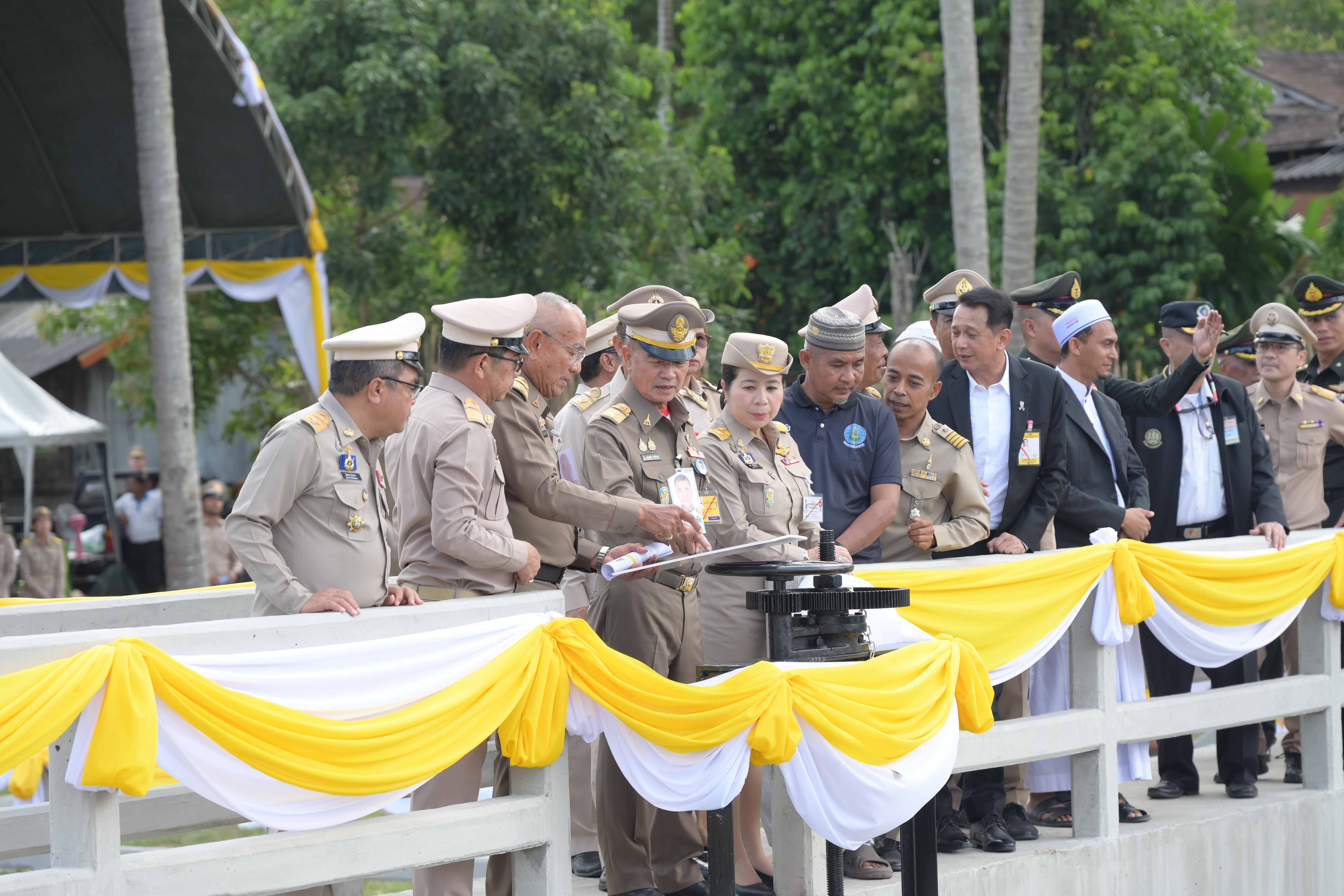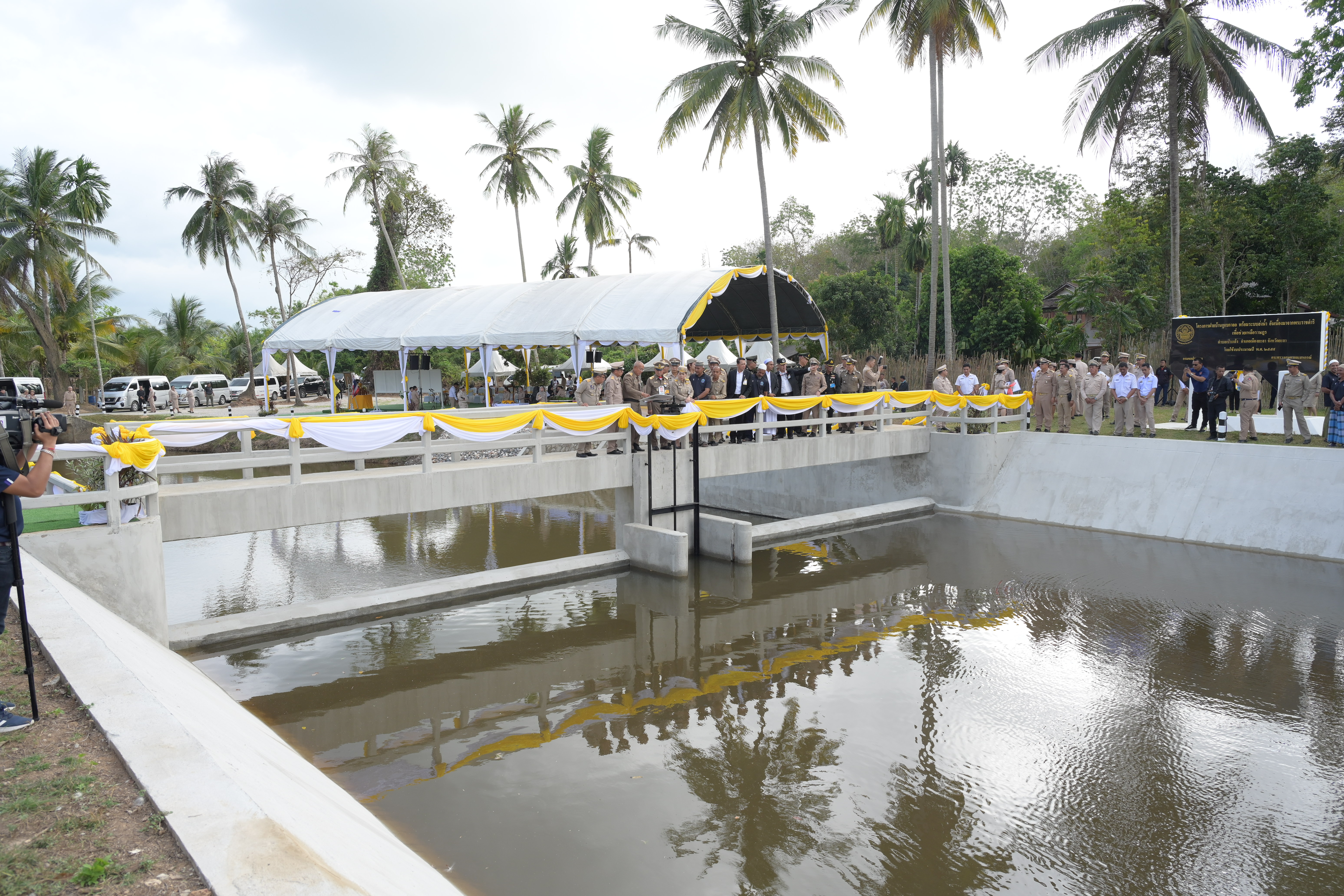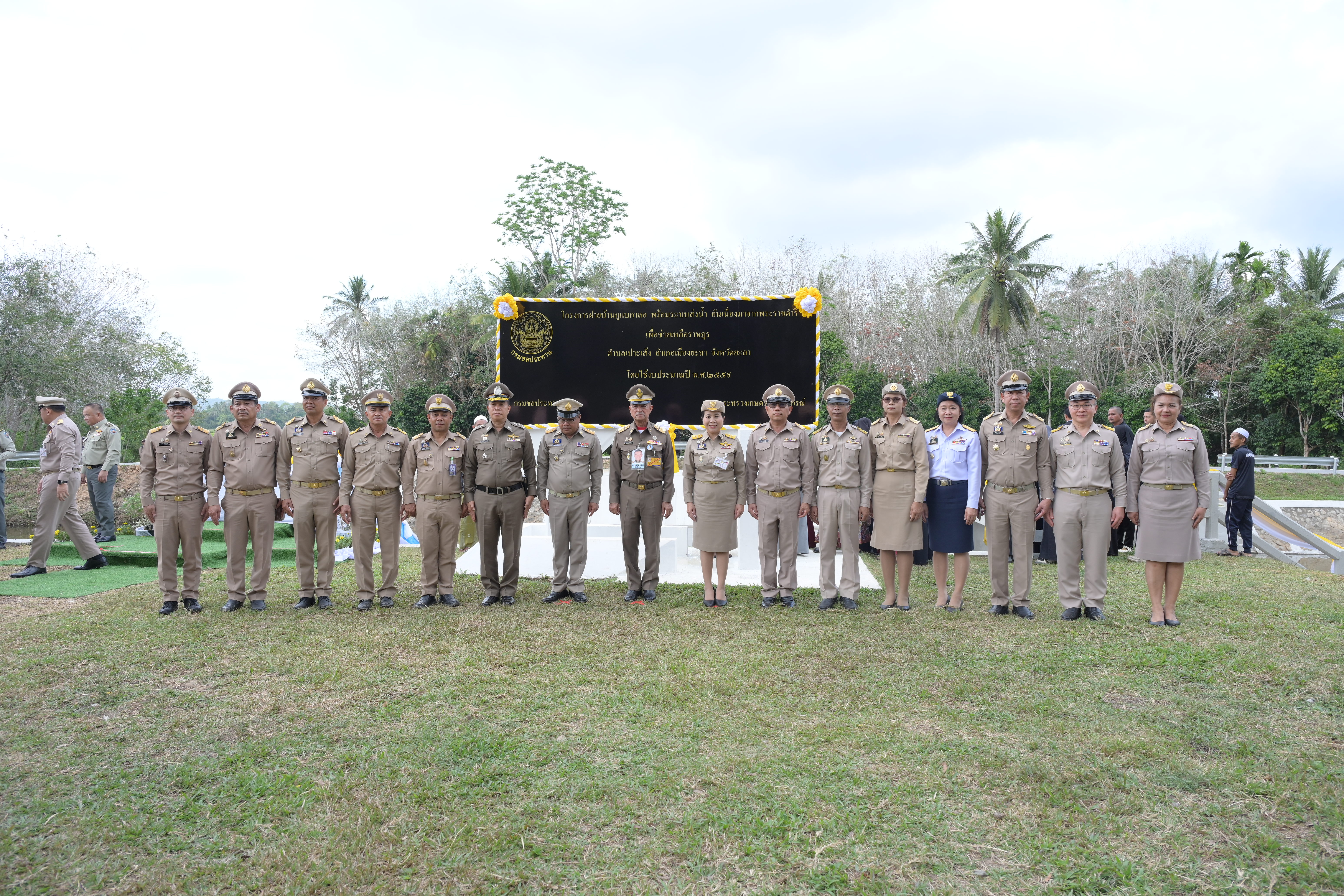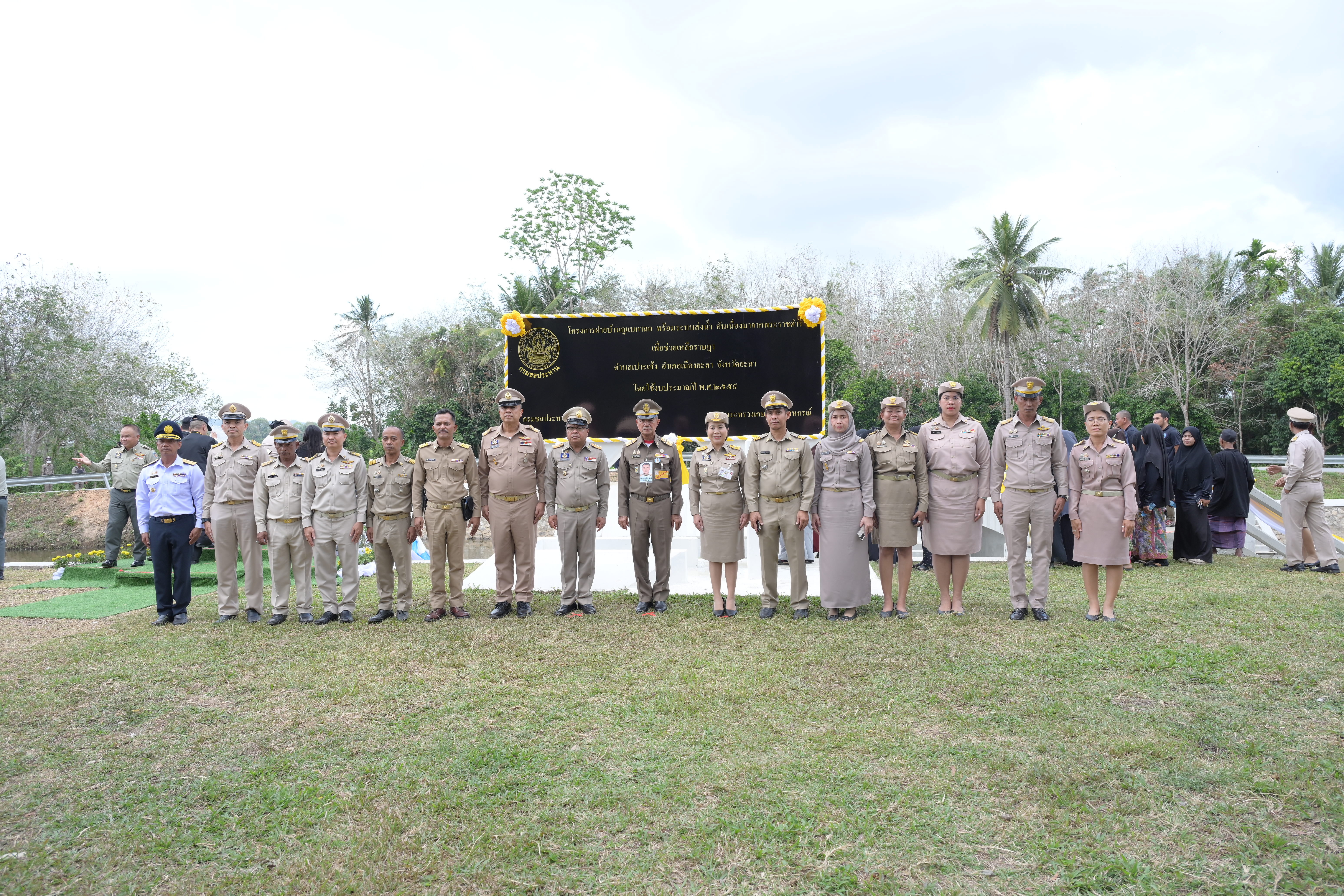 ในช่วงบ่าย องคมนตรีและคณะ ได้เดินทางไปติดตามผลการดำเนินงานโครงการฝายบ้านกูแบกาลอ พร้อมระบบส่งน้ำอันเนื่องมาจากพระราชดำริ ตำบลเปาะเส้ง อำเภอเมืองยะลา จังหวัดยะลา เมื่อวันที่ 9 เมษายน 2553 พระบาทสมเด็จพระบรมชนกาธิเบศร มหาภูมิพลอดุลยเดชมหาราช บรมนาถบพิตร ทรงพระกรุณาโปรดเกล้าฯ รับโครงการฝายบ้านกูแบกาลอพร้อมระบบส่งน้ำอันเนื่องมาจากพระราชดำริ ตามที่ นายดอเลาะแม แวกาจิ ผู้ใหญ่บ้าน หมู่ที่ 4 ตำบลเปาะเส้ง อำเภอเมืองยะลา จังหวัดยะลา ได้มีหนังสือขอให้นำความกราบบังคมทูลพระกรุณาขอพระราชทานโครงการบริหารจัดการน้ำเพื่อการเกษตร เพื่อช่วยเหลือราษฎรตำบลเปาะเส้ง ตำบลลิดล ตำบลหน้าถ้ำ และตำบลยะลา อำเภอเมืองยะลา จังหวัดยะลา ซึ่งประสบความเดือดร้อนขาดแคลนน้ำสำหรับการเกษตร และการอุปโภคบริโภคและทำการเกษตร กรมชลประทานได้ดำเนินการก่อสร้างฝายบ้านกูแบกาลอ สามารถส่งน้ำเพื่อช่วยเหลือราษฎรบ้านกูแบกาลอ หมู่ที่ 1 ตำบลเปาะเส้ง อำเภอเมืองยะลา จังหวัดยะลา จำนวน 85 ครัวเรือน มีน้ำใช้สำหรับการอุปโภคบริโภค และพื้นที่การเกษตร จำนวน 1,000 ไร่ ได้อย่างเพียงพอตลอดปี กรมชลประทานมีแผนการดำเนินการปรับปรุงระบบส่งน้ำเพิ่มเติม ให้ครอบคลุมพื้นที่การเกษตรจำนวน 100 ไร่ และแก้ไขปัญหาพื้นที่นาร้าง จำนวน 200 ไร่ ของเกษตรกร เพื่อเพิ่มประสิทธิภาพการส่งน้ำให้ดียิ่งขึ้น ซึ่งปัจจุบันอยู่ระหว่างการพิจารณาโครงการ เพื่อกำหนดแนวคูส่งน้ำให้เหมาะสมกับความต้องการของเกษตรกรผู้รับประโยชน์ได้อย่างเพียงพอตลอดปี ในการนี้ ได้มีการจัดตั้งกลุ่มผู้ใช้น้ำ “โครงการฝายบ้านกูแบกาลอพร้อมระบบส่งน้ำอันเนื่องมาจากพระราชดำริ ตำบลเปาะเส้ง อำเภอเมืองยะลา จังหวัดยะลา” เมื่อวันที่ 14 มีนาคม 2556 และได้ฟื้นฟูกลุ่มผู้ใช้น้ำเมื่อวันที่ 15 มกราคม 2569 เพื่อให้ราษฎรมีส่วนร่วมในการบริหารจัดการน้ำให้เกิดประโยชน์สูงสุด ทั่วถึง และเป็นธรรม
