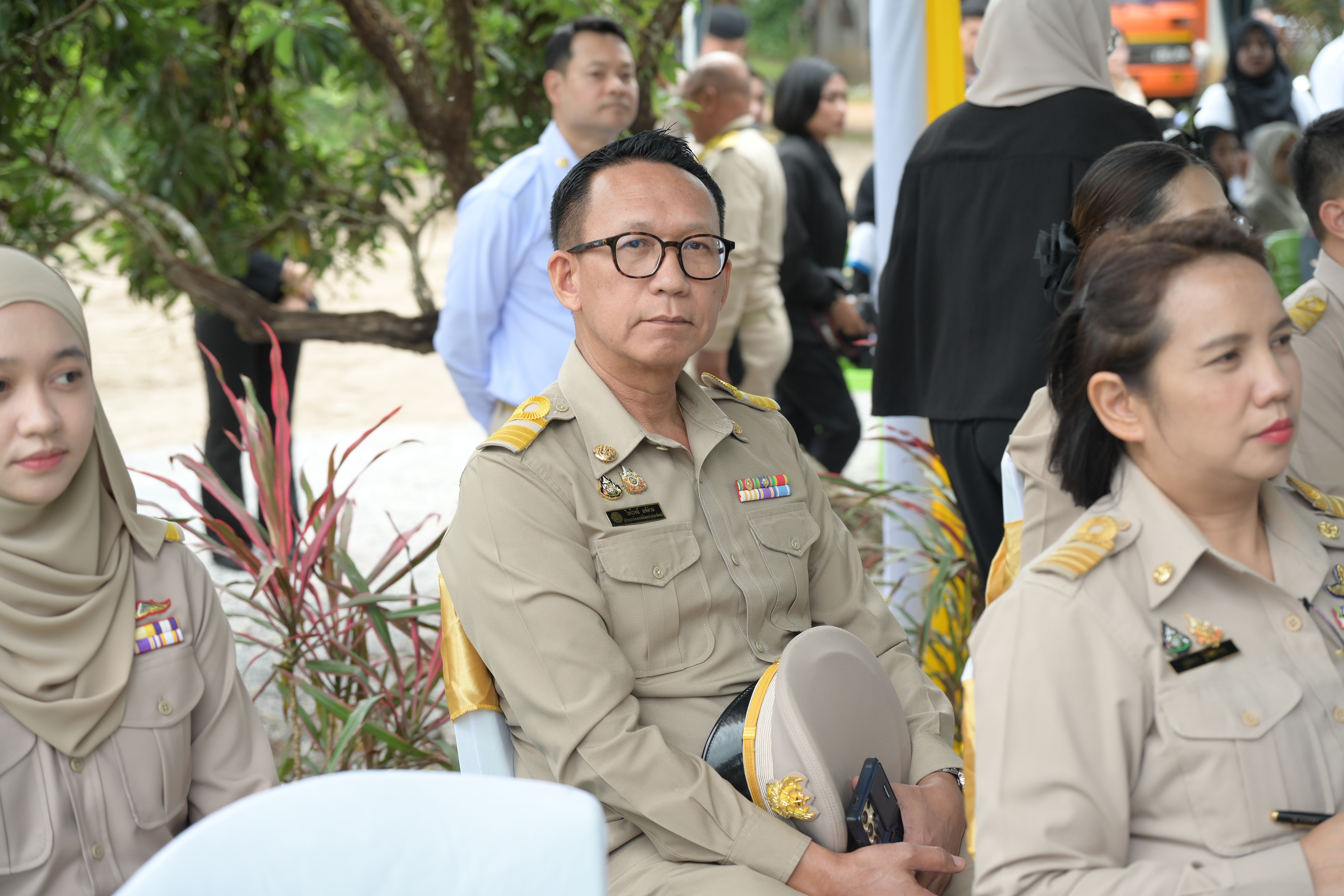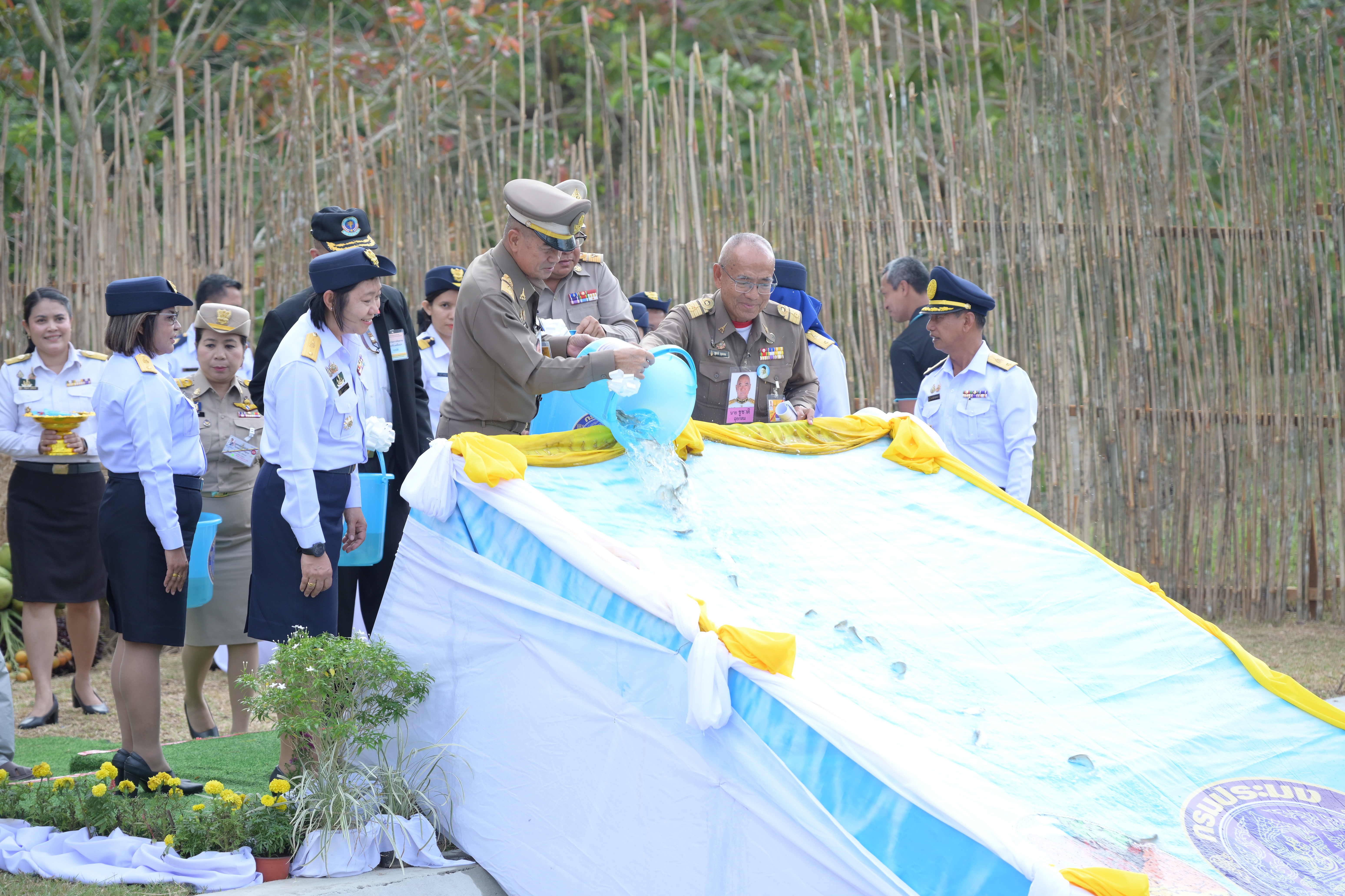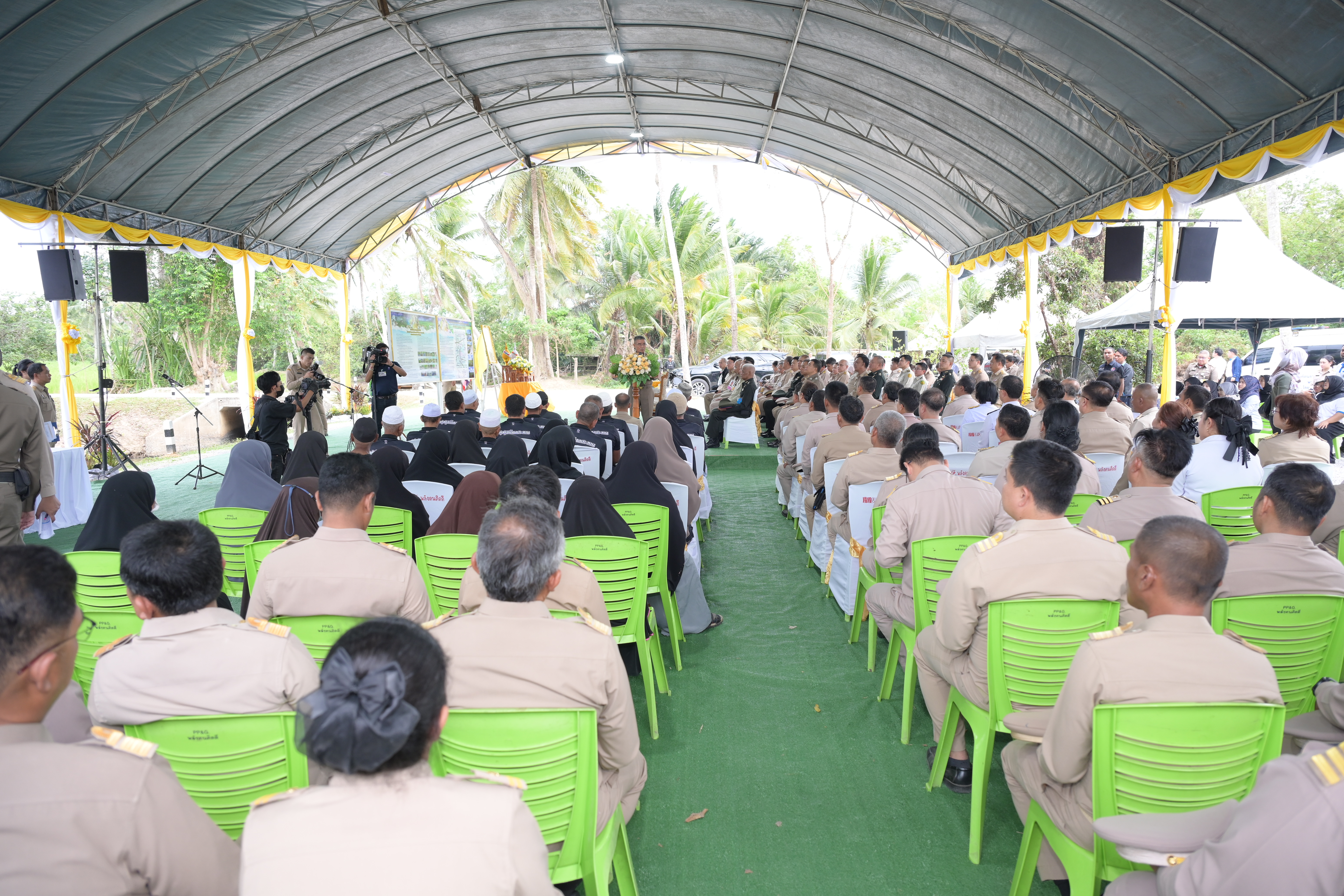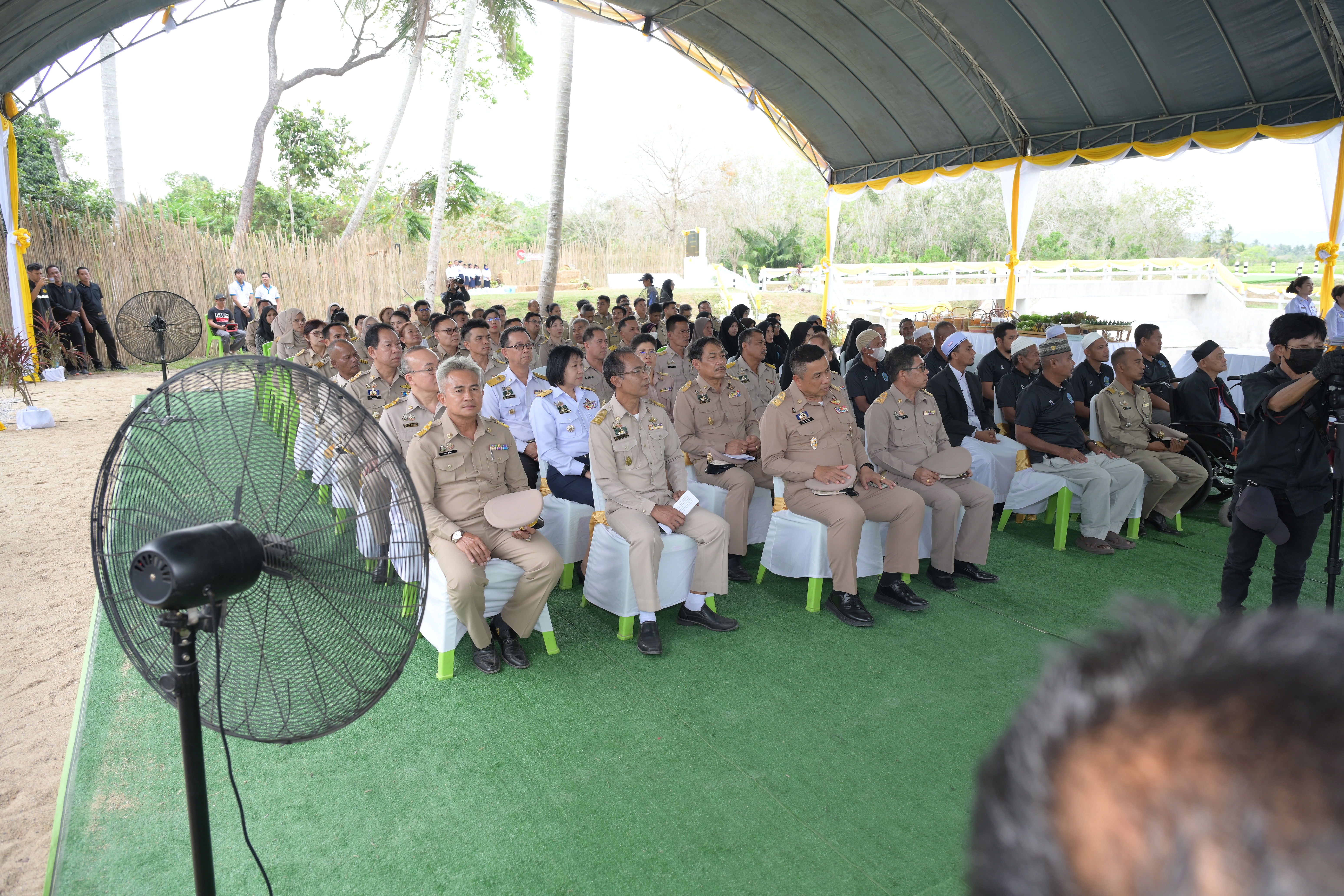 ในช่วงบ่าย องคมนตรีและคณะ ได้เดินทางไปติดตามผลการดำเนินงานโครงการฝายบ้านกูแบกาลอ พร้อมระบบส่งน้ำอันเนื่องมาจากพระราชดำริ ตำบลเปาะเส้ง อำเภอเมืองยะลา จังหวัดยะลา เมื่อวันที่ 9 เมษายน 2553 พระบาทสมเด็จพระบรมชนกาธิเบศร มหาภูมิพลอดุลยเดชมหาราช บรมนาถบพิตร ทรงพระกรุณาโปรดเกล้าฯ รับโครงการฝายบ้านกูแบกาลอพร้อมระบบส่งน้ำอันเนื่องมาจากพระราชดำริ ตามที่ นายดอเลาะแม แวกาจิ ผู้ใหญ่บ้าน หมู่ที่ 4 ตำบลเปาะเส้ง อำเภอเมืองยะลา จังหวัดยะลา ได้มีหนังสือขอให้นำความกราบบังคมทูลพระกรุณาขอพระราชทานโครงการบริหารจัดการน้ำเพื่อการเกษตร เพื่อช่วยเหลือราษฎรตำบลเปาะเส้ง ตำบลลิดล ตำบลหน้าถ้ำ และตำบลยะลา อำเภอเมืองยะลา จังหวัดยะลา ซึ่งประสบความเดือดร้อนขาดแคลนน้ำสำหรับการเกษตร และการอุปโภคบริโภคและทำการเกษตร กรมชลประทานได้ดำเนินการก่อสร้างฝายบ้านกูแบกาลอ สามารถส่งน้ำเพื่อช่วยเหลือราษฎรบ้านกูแบกาลอ หมู่ที่ 1 ตำบลเปาะเส้ง อำเภอเมืองยะลา จังหวัดยะลา จำนวน 85 ครัวเรือน มีน้ำใช้สำหรับการอุปโภคบริโภค และพื้นที่การเกษตร จำนวน 1,000 ไร่ ได้อย่างเพียงพอตลอดปี กรมชลประทานมีแผนการดำเนินการปรับปรุงระบบส่งน้ำเพิ่มเติม ให้ครอบคลุมพื้นที่การเกษตรจำนวน 100 ไร่ และแก้ไขปัญหาพื้นที่นาร้าง จำนวน 200 ไร่ ของเกษตรกร เพื่อเพิ่มประสิทธิภาพการส่งน้ำให้ดียิ่งขึ้น ซึ่งปัจจุบันอยู่ระหว่างการพิจารณาโครงการ เพื่อกำหนดแนวคูส่งน้ำให้เหมาะสมกับความต้องการของเกษตรกรผู้รับประโยชน์ได้อย่างเพียงพอตลอดปี ในการนี้ ได้มีการจัดตั้งกลุ่มผู้ใช้น้ำ “โครงการฝายบ้านกูแบกาลอพร้อมระบบส่งน้ำอันเนื่องมาจากพระราชดำริ ตำบลเปาะเส้ง อำเภอเมืองยะลา จังหวัดยะลา” เมื่อวันที่ 14 มีนาคม 2556 และได้ฟื้นฟูกลุ่มผู้ใช้น้ำเมื่อวันที่ 15 มกราคม 2569 เพื่อให้ราษฎรมีส่วนร่วมในการบริหารจัดการน้ำให้เกิดประโยชน์สูงสุด ทั่วถึง และเป็นธรรม