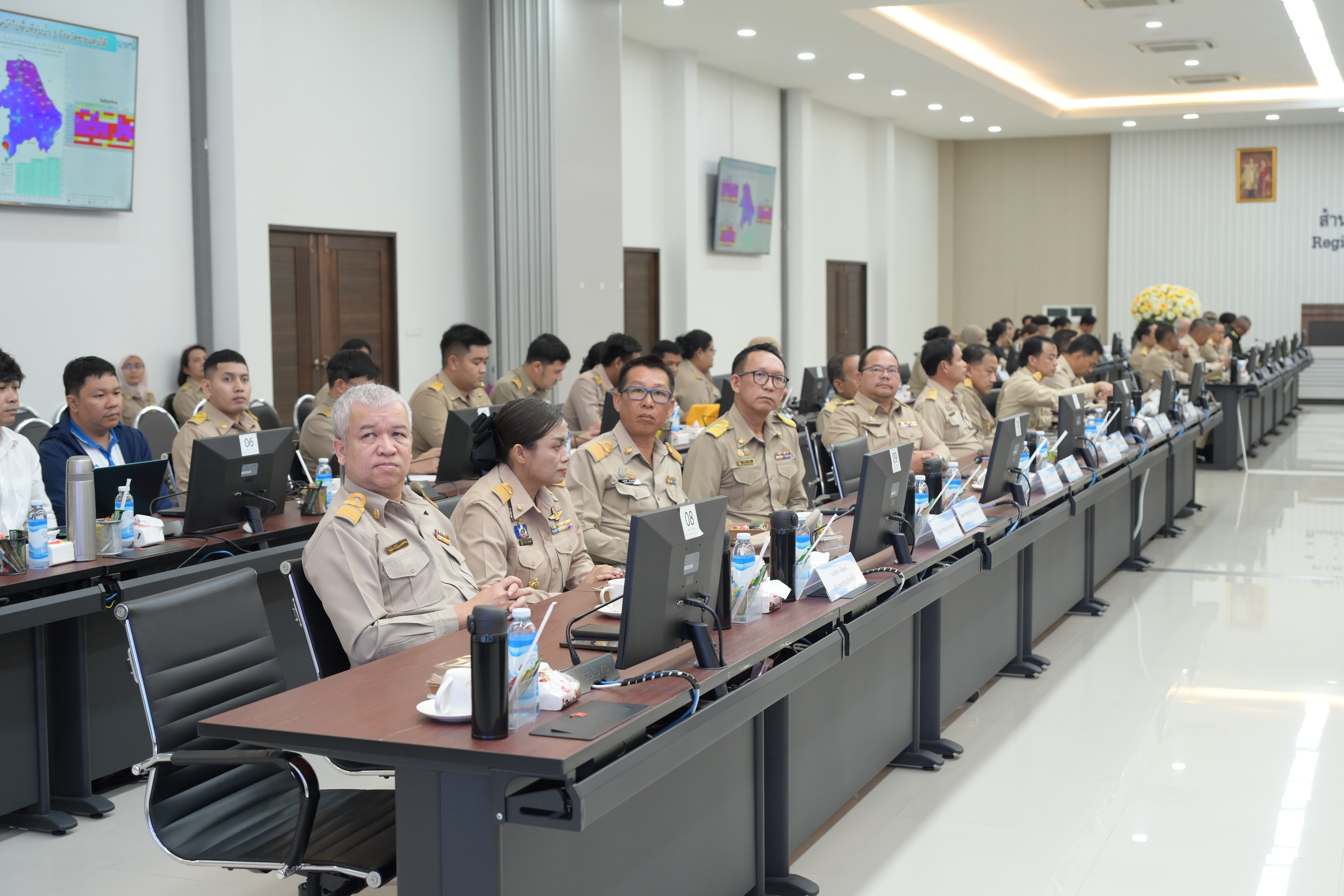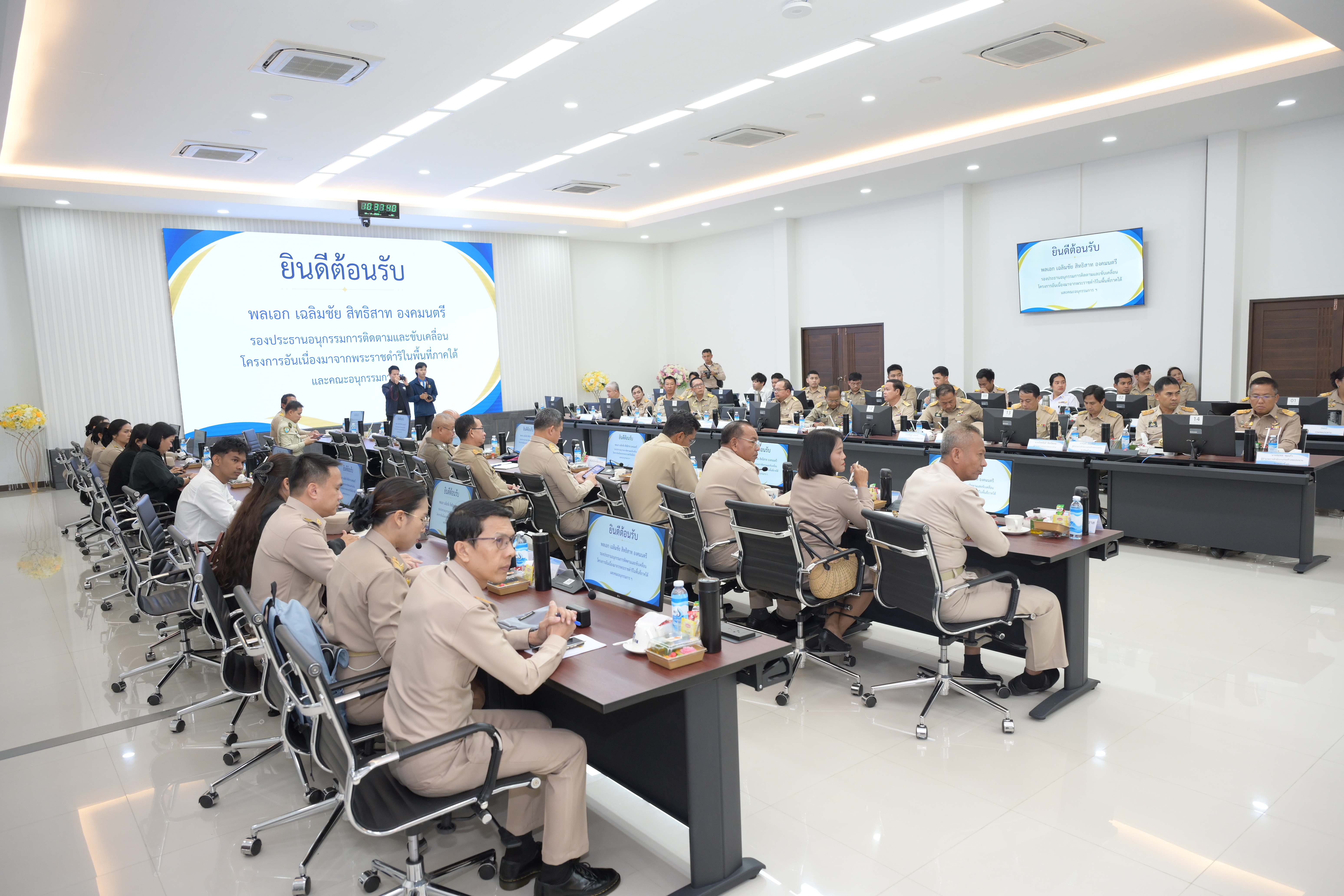 วันนี้ 18 กุมภาพันธ์ 2569 พลเอก เฉลิมชัย สิทธิสาท องคมนตรี พร้อมด้วย นางสุพร ตรีนรินทร์ เลขาธิการสำนักงานคณะกรรมการเพื่อประสานงานโครงการอันเนื่องมาจากพระราชดำริ และคณะอนุกรรมการฯ ประชุมติดตามและขับเคลื่อนโครงการอันเนื่องมาจากพระราชดำริในพื้นที่จังหวัดนราธิวาส โดยมี นายธเนศ ดิษฐปัญญา ผู้ทรงคุณวุฒิด้านวิศวกรรมโยธา (ด้านควบคุมการก่อสร้าง) กรมชลประทาน นายพีรพัฒน์ วรธรรม ผู้อำนวยการส่วนบริหารจัดการน้ำและบำรุงรักษา นายบุญช่วย หอมยามเย็น ผู้ว่าราชการจังหวัดนราธิวาส และหัวหน้าส่วนราชการร่วมประชุม พร้อมรับฟังรายงานสถานการณ์น้ำ สรุปสถานการณ์ความเสียหายจากอุทกภัย ปี 2568 ในพื้นที่ 3 จังหวัดชายแดนภาคใต้ รายงานฟื้นฟูให้ความช่วยเหลือพื้นที่ที่ได้รับความเสียหายจากอุทกภัยในจังหวัดนราธิวาส ณ ห้องประชุมอาคารศูนย์ปฏิบัติการน้ำอัจฉริยะ สำนักงานชลประทานที่ 17 ตำบลกะลุวอเหนือ อำเภอเมือง จังหวัดนราธิวาส สำหรับเหตุการณ์อุทกภัย ปี 2568 ที่ผ่านมา สำนักงานชลประทานที่ 17 ได้ระดมติดตั้งเครื่องสูบน้ำ เครื่องผลักดันน้ำ พร้อมระดมเครื่องจักร เครื่องมือที่มือต่างๆ เร่งสูบเร่งระบายน้ำออกจากพื้นที่ท่วมขังอย่างเต็มศักยภาพ โครงการอันเนื่องมาจากพระราชดำริที่ได้รับความเสียหายจากสถานการณ์อุทกภัย จำนวน 42 โครงการ ซึ่งสำนักงานชลประทานที่ 17 ได้ให้ความช่วยเหลือประชาชนในพื้นที่โดยมอบถุงยังชีพช่วยเหลือประชาชนในทุกพื้นที่รวมกว่า 1,500 ชุด น้ำดื่ม 3,306 โหล ข้าวกล่อง 4,015 กล่อง ทั้งนี้ องคมนตรีได้มอบนโยบายให้ทุกหน่วยงานดำเนินงานตามแผนงานการขับเคลื่อนโครงการอันเนื่องมาจากพระราชดำริ รวมทั้งให้ใช้ประโยชน์จากโครงการอันเนื่องมาจากพระราชดำริในพื้นที่เพื่อช่วยเหลือประชาชนอย่างเต็มศักยภาพ และขอให้ตรวจสอบสภาพโครงการให้พร้อมใช้งานอยู่เสมอ ตลอดจน ประชาสัมพันธ์ให้ประชาชนรับทราบถึงพระมหากรุณาธิคุณที่พระบาทสมเด็จพระเจ้าอยู่หัวทรงมีความห่วงใยต่อราษฎรในพื้นที่ จากนั้น องคมนตรีได้มอบอินทผาลัมจำนวน 24 ลัง และน้ำหวาน จำนวน 24 ลัง ให้กับผู้นำศาสนาอิสลาม (โต๊ะอิหม่าม) เพื่อนำไปมอบให้กับประชาชนพี่น้องชาวไทยมุสลิม ในช่วงเดือนรอมฎอน เดือนอันประเสริฐ (ช่วงเวลา ถือศีลอด) ของปี พ.ศ. 2569 (ฮ.ศ.1447) ซึ่งการถือศีลอดในเดือนรอมฎอนเป็นธรรมเนียมที่ชาวมุสลิมปฏิบัติสืบต่อกันมาอย่างยาวนาน ถือเป็นพิธีสำคัญที่ช่วยเตือนใจให้ยึดมั่นในศีลธรรม งดเว้นจากการกระทำที่ขัดต่อหลักศาสนา และเสริมสร้างความศรัทธาในพระผู้เป็นเจ้า